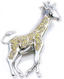 baby giraffe brooch with natural yellow diamonds. All in platinum delicatly